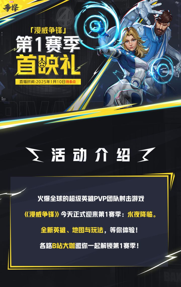 另外,今晚8点,《漫威争锋》第1赛季首映礼即将震撼开播,特邀多位B站大咖,共同组成超级明星直播团和大咖创玩团,陪大家度过超英之夜!