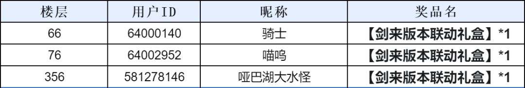 1. 从评论里抽取3名提出给力建议的御灵师获得【剑来版本联动礼盒】*1(开奖时间2/10)