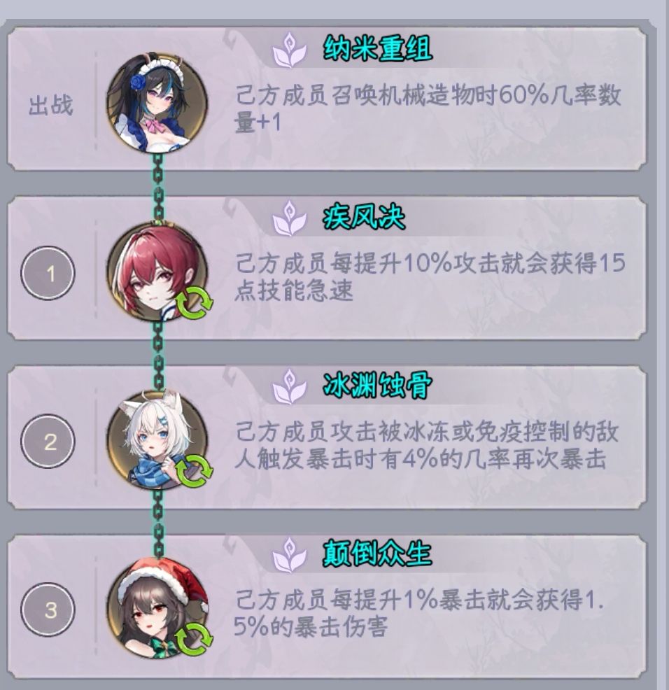 白夜基础cd很长,硬币等级较低时无法满足cd需求,因此需要双倍羁绊加持下的共鸣为白夜提供cd,并且6法师也可以提高S猎魔吸怪速度。