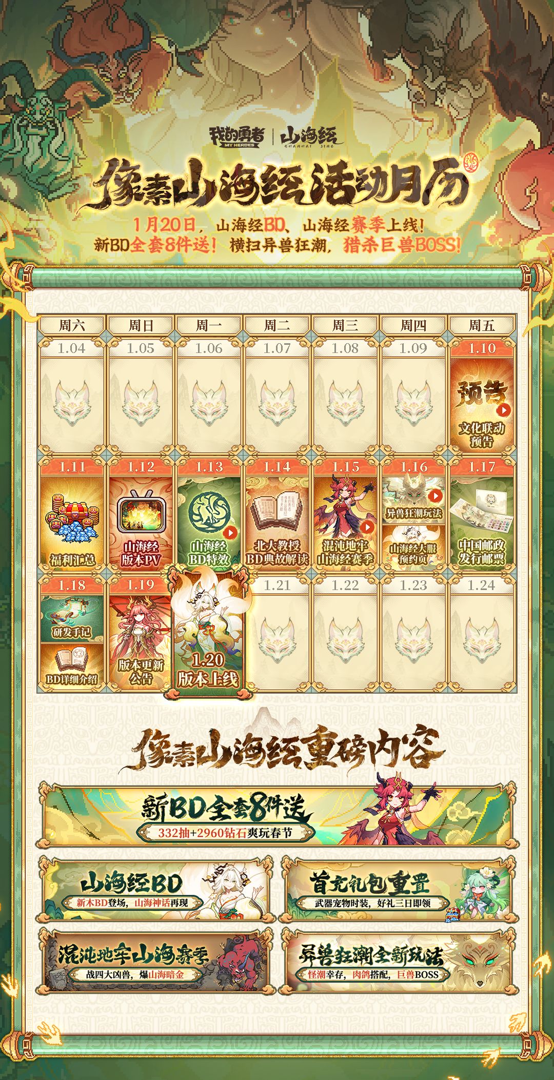 【120像素山海经】版本月历+福利汇总来袭!(含礼包码&抽奖)