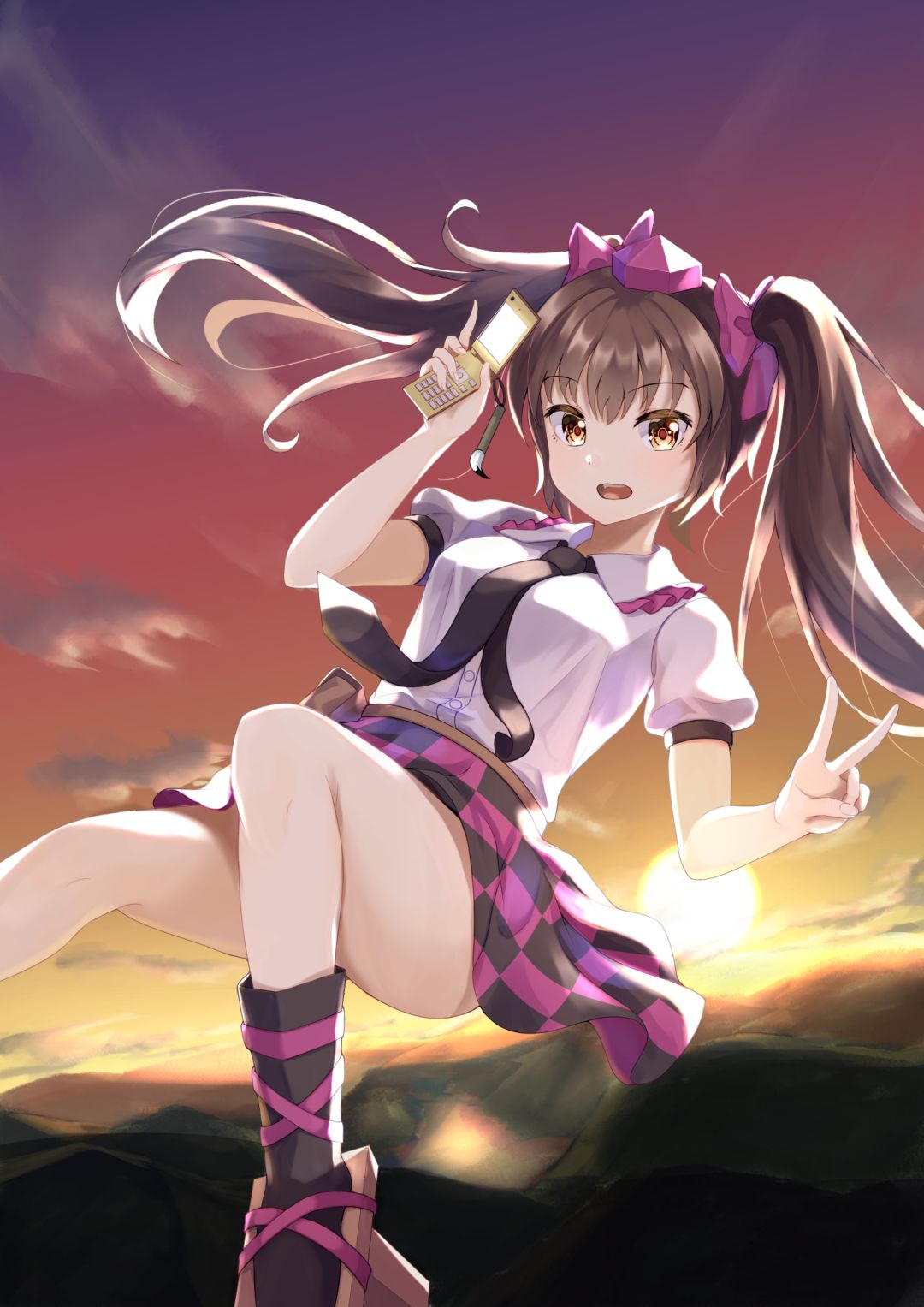 刘海普通;发型流线鲍勃;发尾猫咪双马尾;发色乌贼黑;挑染紫水晶;