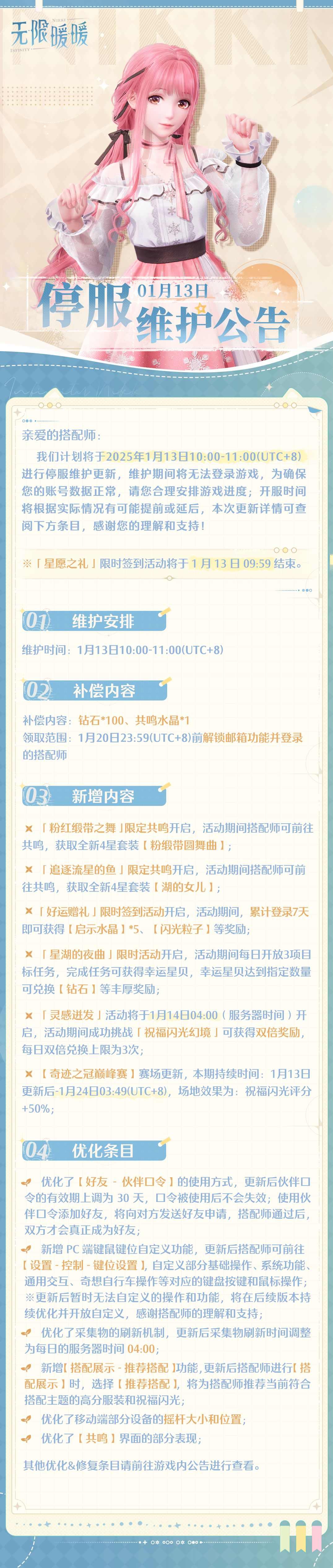 《无限暖暖》1月13日更新预告