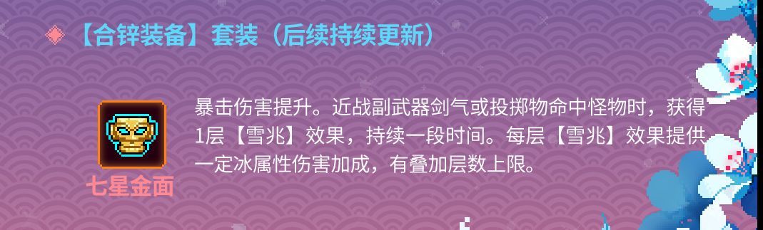 》再就是俩个蓝道具,千峰落雪这个套装是偏向于射击的近战套装,也就说射程,剑气数量,飞行速度还有穿透次数这几个点对于这个套装都是非常重要的,所以这俩个蓝色道具的镀层也尤为重要![[心动小镇_点赞]](https://img-tc.tapimg.com/market/images/17a929b2fb36da6ca1d925a7d08acef9.png)