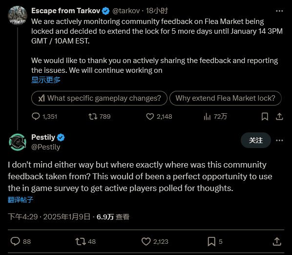 《逃离塔科夫》跳蚤市场关停延长:考虑反馈