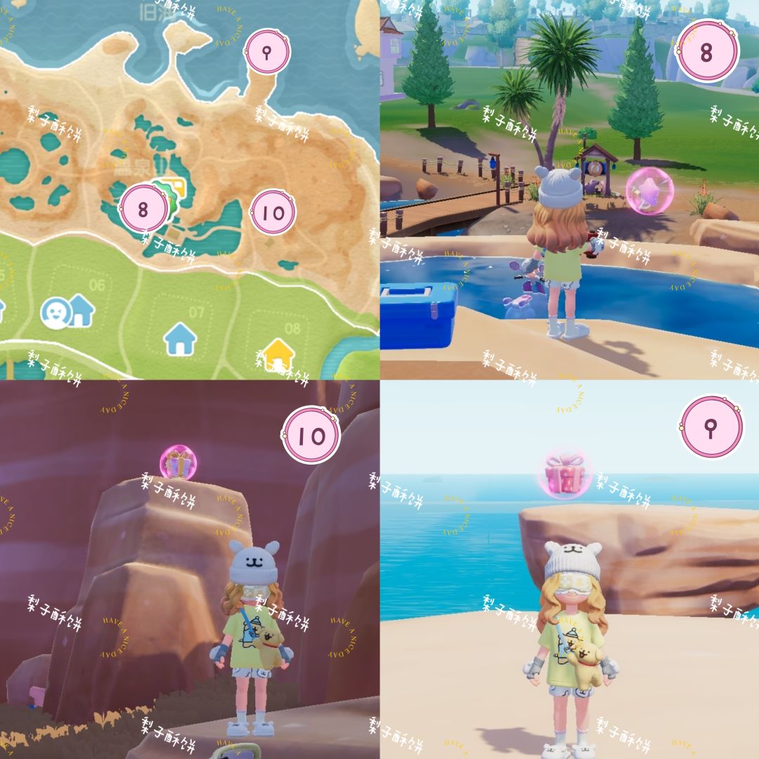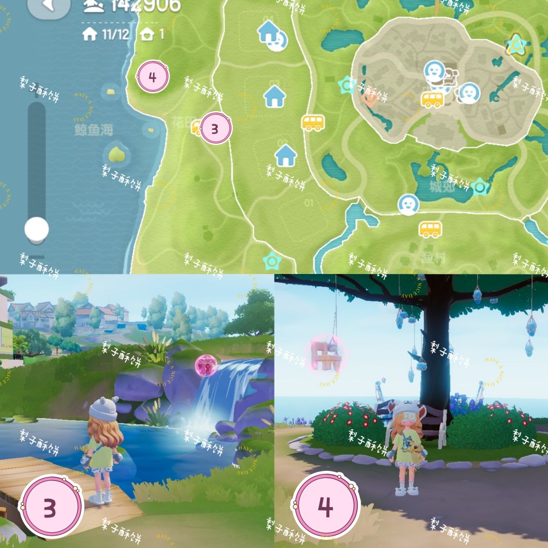 花田4个:秋千上 救生观察台上 花田公交站旁(需要等待一下) 鲸鱼山上1.11-1.17 本周粉色泡泡位置