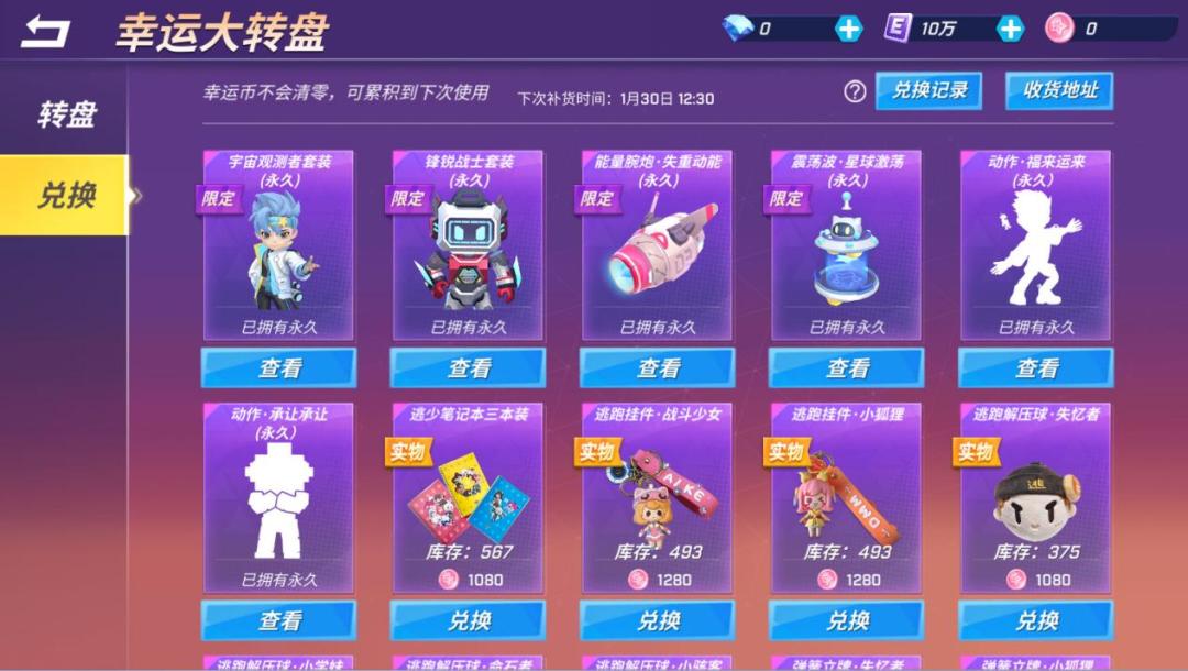 时装:茶气郎·宇宙观测者套装(史诗)、机器人·锋锐战士套装(史诗)道具卡皮肤:能量腕炮·失重动能、震荡波·星球激荡
