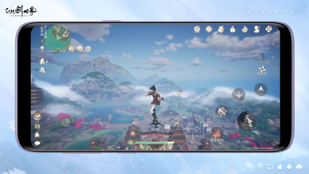 在本次直播最后,海涛展示了《仙剑世界》移动端的性能表现,用实机现场进行了演示。只在iPhone 14下的《仙剑世界》,无论是草木茂盛的野外,怪物成群的战场,抑或是楼宇林立的苏州城,都能达到60帧的画面,行走奔跑、御剑飞行、打怪战斗的体验都更加丝滑。当角色从单人区域走到多人区域,因为游戏内时间不同,昼夜及周围环境也能瞬间秒切换。