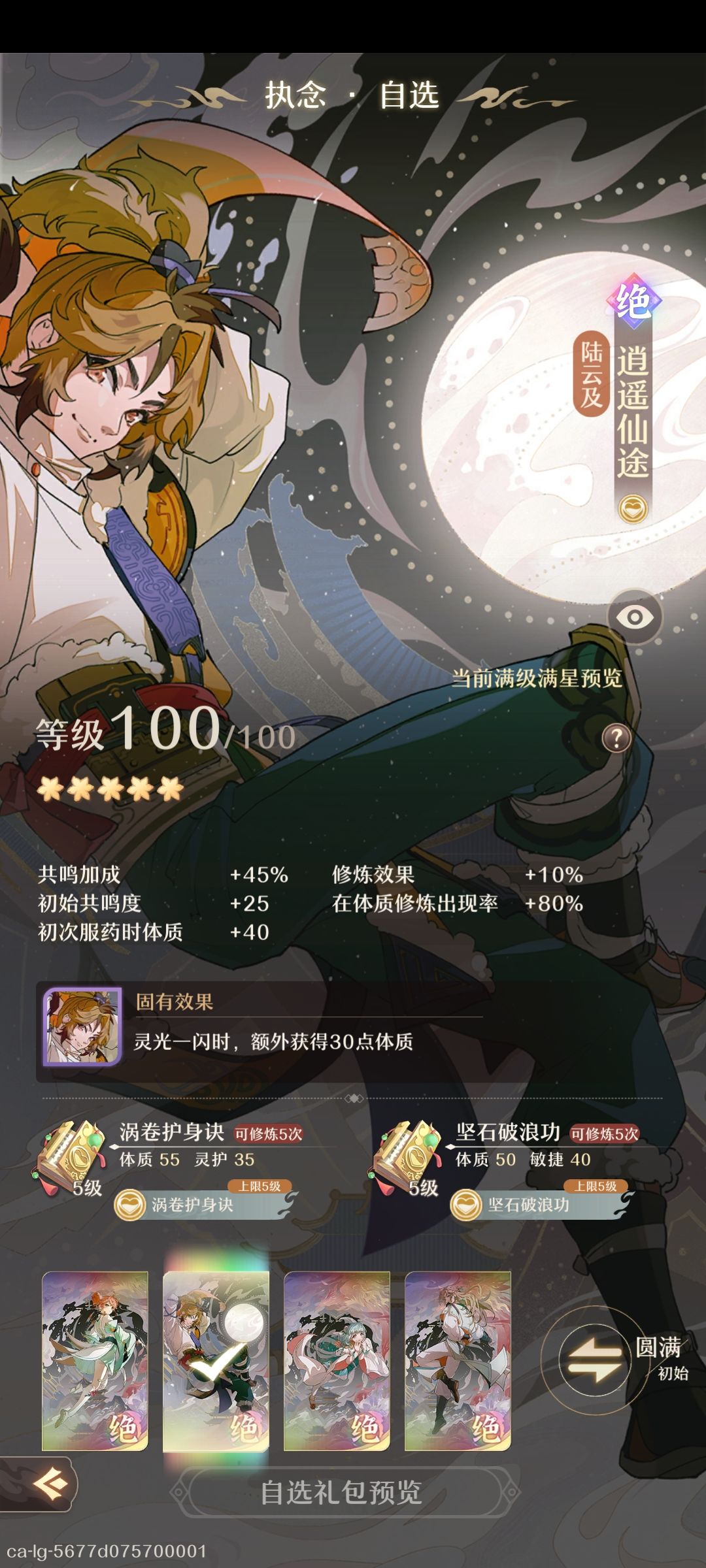 逍遥仙途(战令自选):t0属性(+45,+10,+80),t3技能。属性好,固有看脸触发 ,可以当纯修炼卡用。