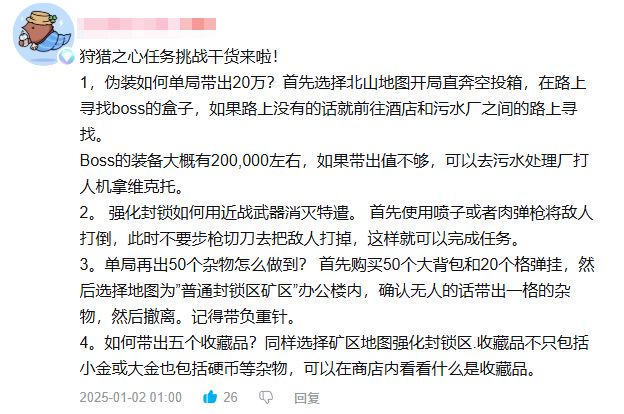 狩猎之心活动开启以来,也有不少先锋们在评论区下方踊跃发表自己的见解和建议,也有先锋分享了自己的干货攻略,省事省时!