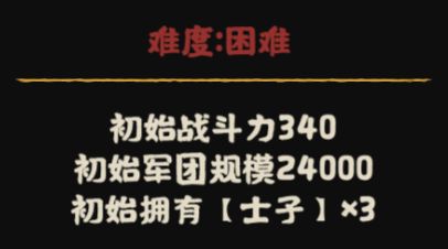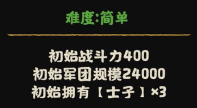 初始战斗力400,初始军团规模24000,初始拥有【士子】x3