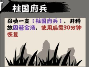 召唤一支【柱国府兵】,井释放固若金汤,使用后需30分钟恢复