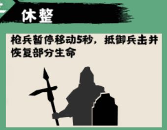 卡牌效果:修整枪兵暂停移动5秒,抵御兵击井恢复部分生命