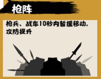 卡牌效果:枪阵枪兵、战车10秒内暂缓移动,攻防提升
