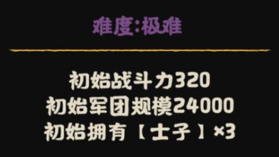 初始战斗力320、初始军团规模24000、初始拥有【士子】x3