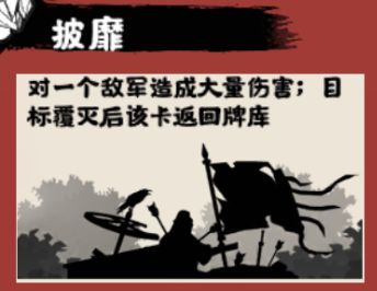 卡牌效果:披靡对一个敌军造成大量伤害;目标覆灭后该卡返回牌库