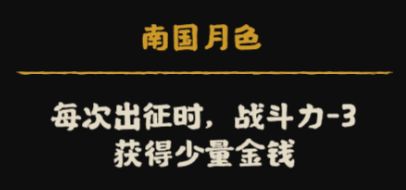 南国月色:每次出征时,战斗力-3,获得少量金钱