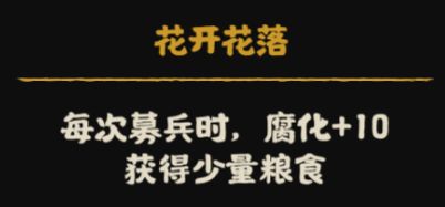 花开花落:每次募兵时,腐化+10,获得少量粮食