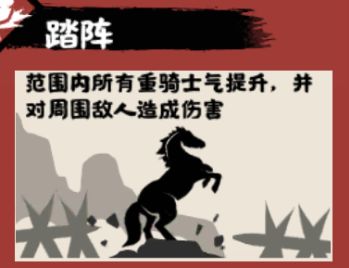 卡牌效果:踏阵范围内所有重骑士气提升,并对周围敌人造成伤害