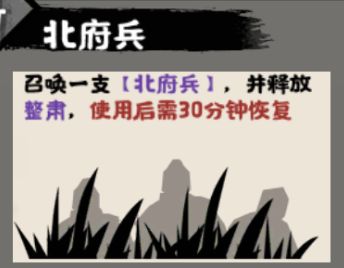 兵种:北府兵召唤一支【北府兵】,并释放整肃,使用后需30分钟恢复