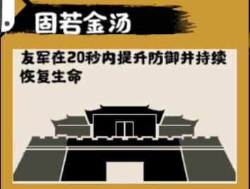 卡牌效果:固若金汤友军在20秒内提升防御井持续恢复生命