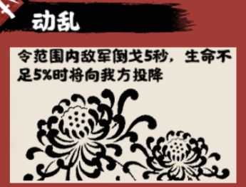 卡牌效果:动乱令范围内敌军倒戈5秒,生命不足5%时将向我方投降