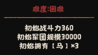 初始战斗力360,初始军团规模30000,初始拥有【马】x3