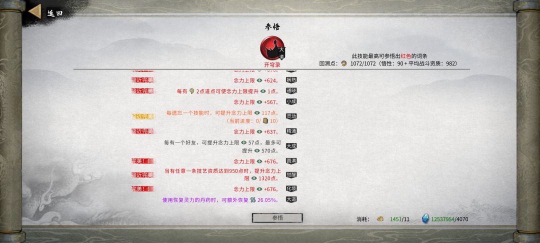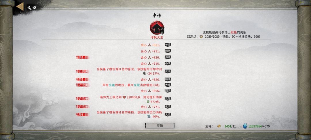 悟道期:领悟选择刀领悟。吸血加100%增伤。三个纯度百分之百,加成最高,有强迫症的可以慢慢刷。