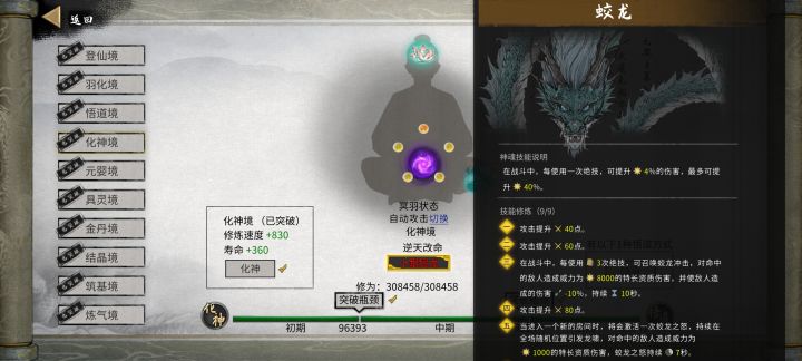 化神期选择青龙或是玄武,想要输出更爆炸就选青龙,手残党选玄武有保命。