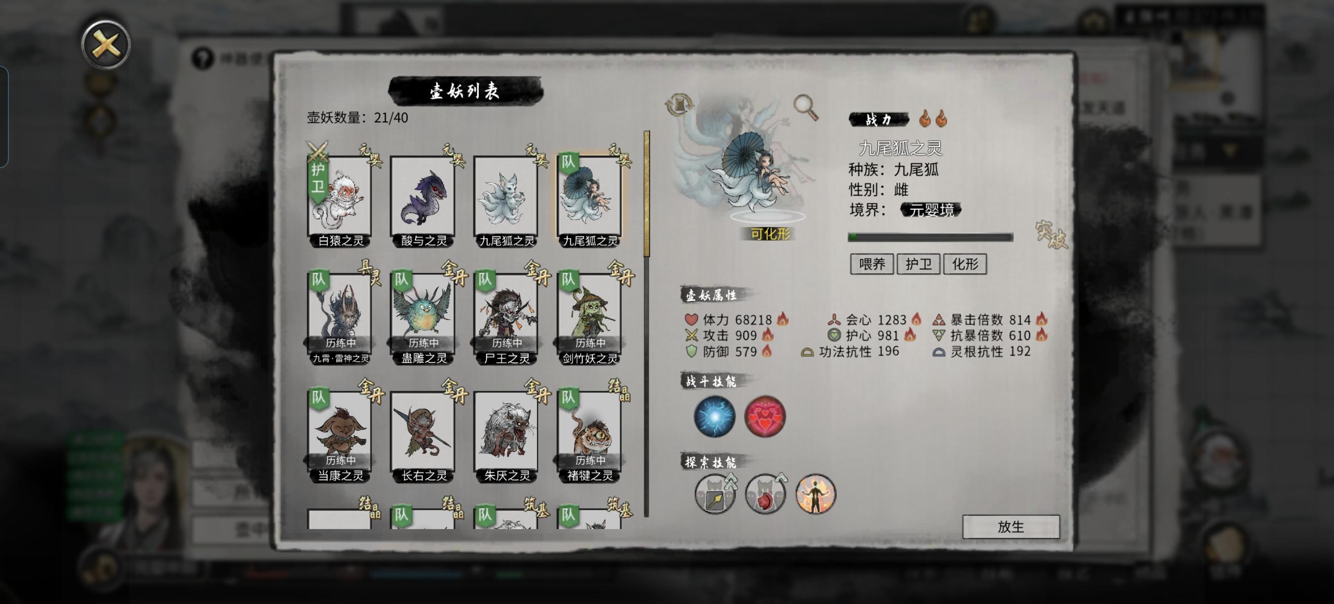 如果有,比如我九尾领悟了一个技能,但不是化形,那就退回主界面,读取上个月月底的存档,重新进入这个月。这时候召回的领悟技能就会变,可能出现其他技能,也可能不出现技能,但不重要。只要没出现化形,就重复上述操作即可。
