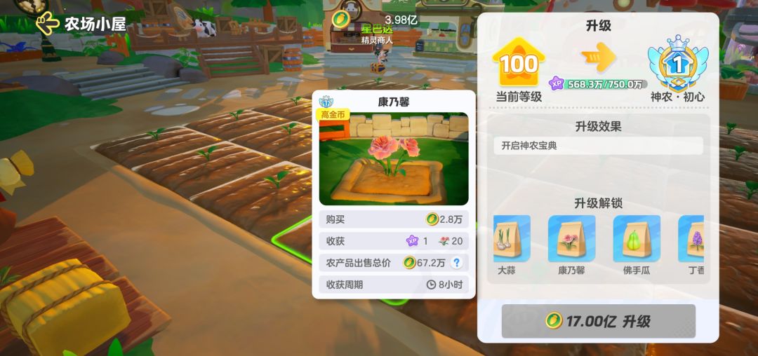 2.我个人准备100级把月季种满级,再突破神农。到神农又解锁一堆金币作物和高经验动物。如果不把月季满级,神农后,也不可能再种月季了,那也是亏。