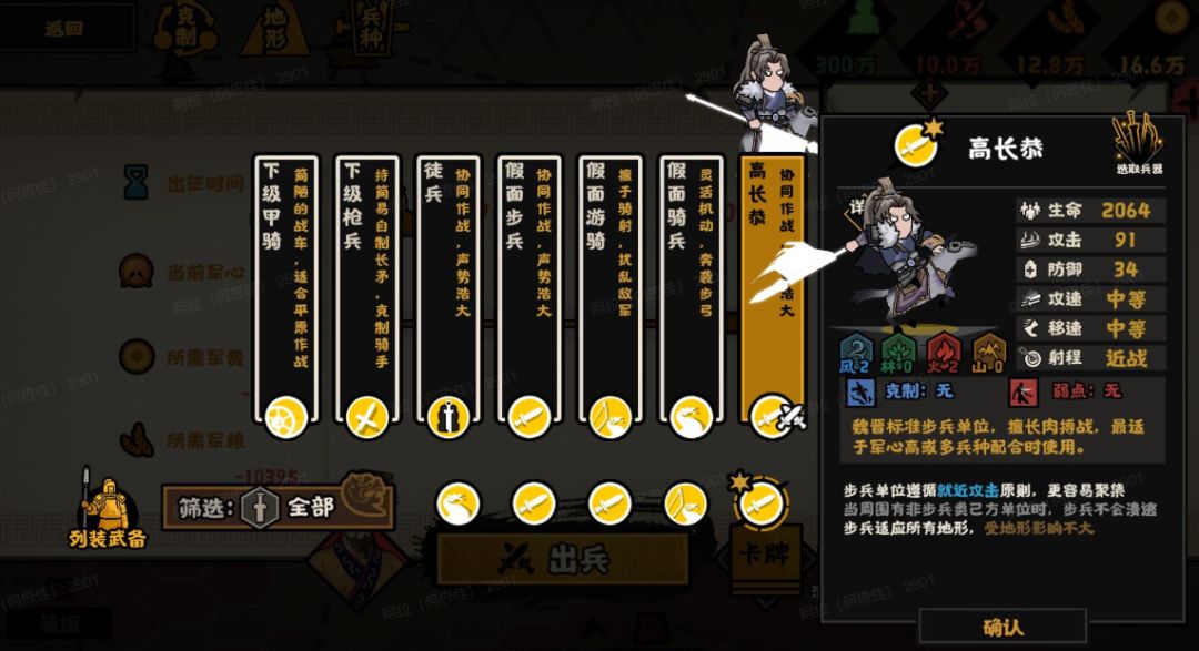 但官方应该不至于设计一个全身上下只有1乐感、20战力和一个武将的妙级名臣,猜测高长恭的武将主动技对假面兵种提升较高。只是如果一味使用假面兵种而舍弃武将、家仆与子弟兵,个人感觉反而束手束脚。欢迎大家在评论区文明讨论。