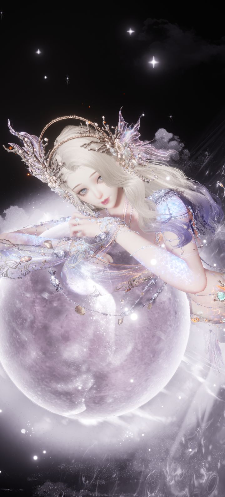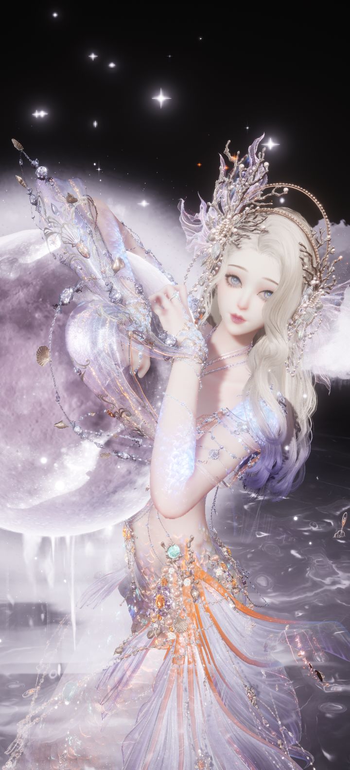 工具人带月亮悬浮,衣服随意但不要太华丽,推荐少女体,用冰上旋舞逆这个动作卡出画面,这样画面就只剩下一个月亮悬浮