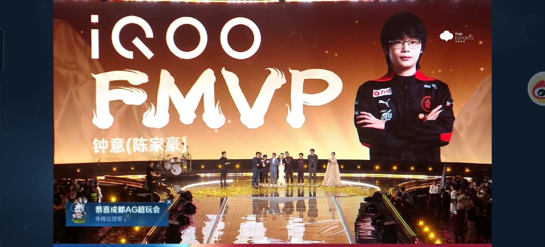 恭喜成都AG超玩会连拿三冠!恭喜钟意拿下FMVP!