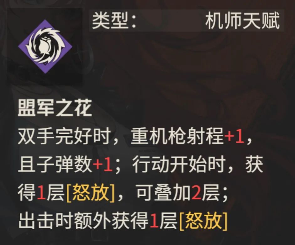 那么今天的攻略咱们就主要围绕一条核心线索来进行梳理即可,那便是玛蒂尔达为啥就能有如此夸张的输出预期呢?首先第一点,她的天赋可以在双手完好时提供重机枪射程+1和子弹+1的特点(子弹这部分为3潜能解锁),那么重机枪的基础子弹数为10颗,这里就有相当于是10%的预期伤害提升了。