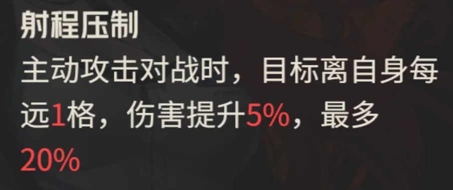 接着玛蒂尔达的【射程压制】技能,也提供了最多4格输出增伤20%的效果支持。