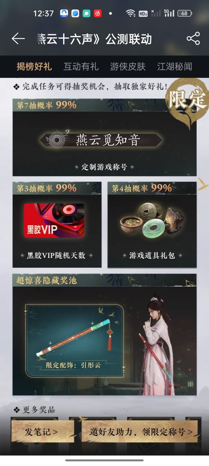 网易云音乐联动《燕云十六声》送限量道具、黑胶VIP啦! 独家限定称号、配饰、黑胶VIP点击领取!