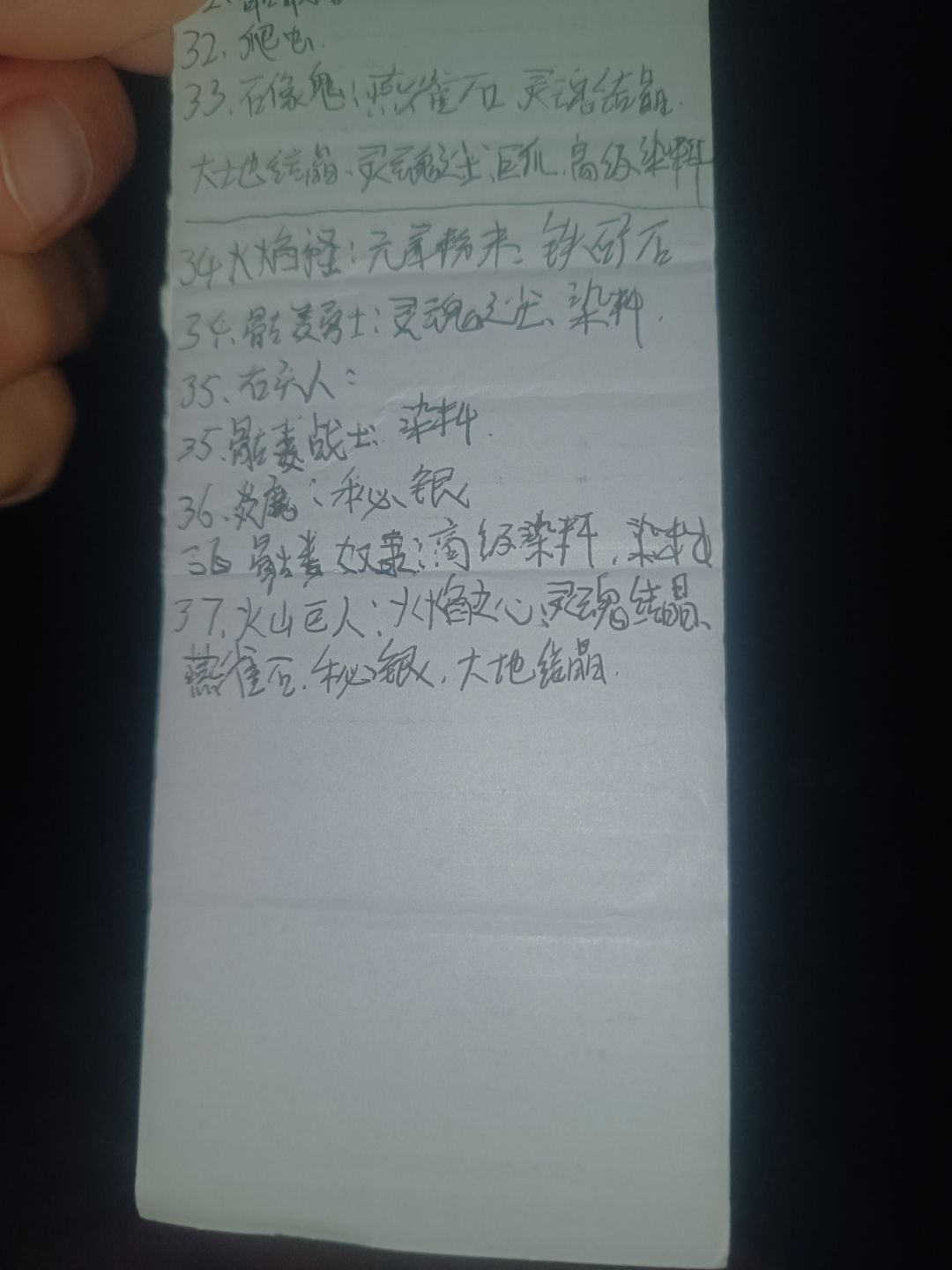 怪物材料列表-手写