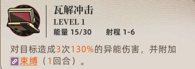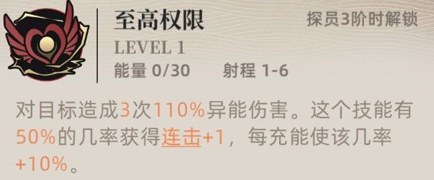 至于紫罗兰,作为开服赠送过一次的五星异能,相信大部分科长都拥有这个角色。紫罗兰的封装体特性是满血时普攻可以弹射一次,弹射降攻20%。这个特性只能说聊胜于无,毕竟除非练度碾压,否则满血的要求实在不好保证。紫罗兰这个角色的特点在于她的两个技能射程很远并且都带有稳定的束缚,在打非巨型boss(比如老洛伦佐、小丑)时,可以有效地限制boss的走位,给到前排更加安全的掩体环境。在1.1版本应对boss安妮塔也非常的好用:安妮塔的技能都是范围和指向性技能,并且属性被紫罗兰克制,可以保障回能。因此紫罗兰可以用两个技能交替束缚安妮塔。加上3阶解锁的1技能特性让敌人的最大攻击距离-2,可以让安妮塔根本打不到人,亲测十分好用,未来或许也会有所发挥。