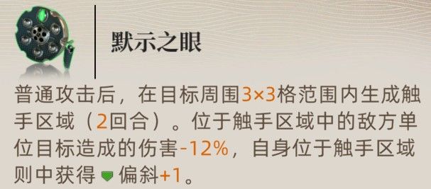 罪徒技能的亮点是处于触手区域时获得的1点回合偏斜效果,加上2拓变的前两回合+1偏斜,使得罪徒可以兼具高输出和高生存的属性,加上罪徒自己的技能组里也有适配高生存的反击机制,整体设计比较协调。同时触手区域给敌人带来的降攻效果也可以帮助到队友建立更加稳固的阵地。
