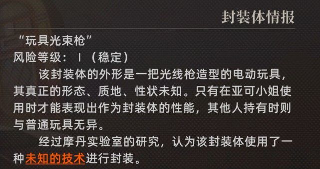 至于六星异能电光游侠,我一度以为这是异能者背景设定中的一个bug,毕竟探员档案中她始终自称”普通人“且封装体只是电光枪,似乎是可以独立运作的封装体,这与我们上面的分析冲突。在仔细阅读以后,我明白了区别所在: