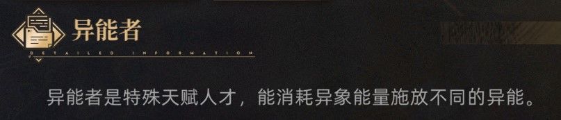 对比其他职业,都会叫做“盾卫”“突击手”“狙击手”等以战场作用为划分依据的名字,但“异能者”这个名称,加上档案中说的“特殊天赋人才”的描述,都明示了异能者应当是本体就有所特殊的一类人群。相比之下,别的探员的特点主要集中在其封装体的特点上,而探员本身更多地是作为“链接者”而存在。