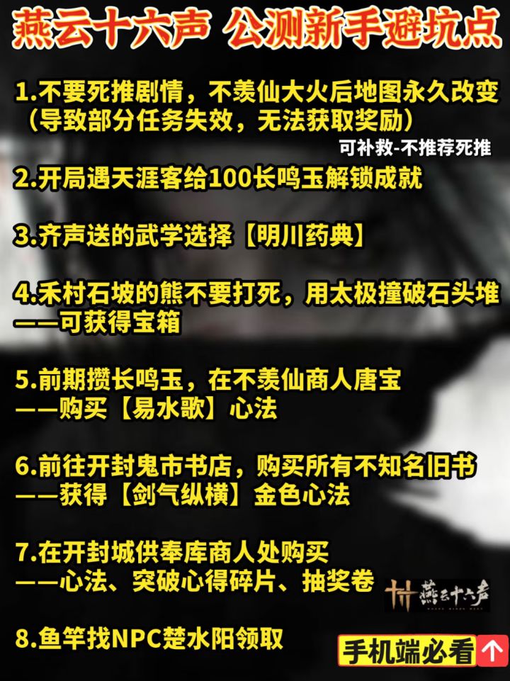 燕云十六声 1.9手机端公测 新手必看避坑点