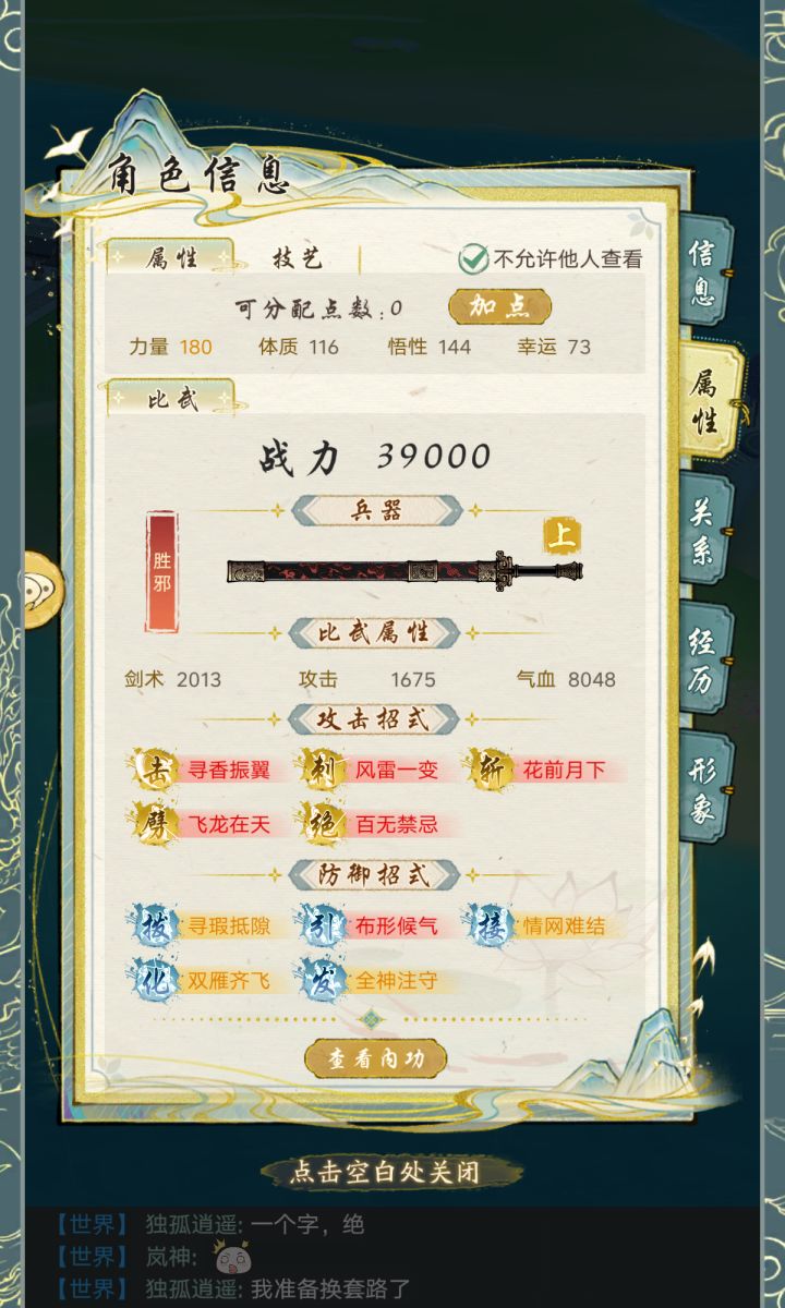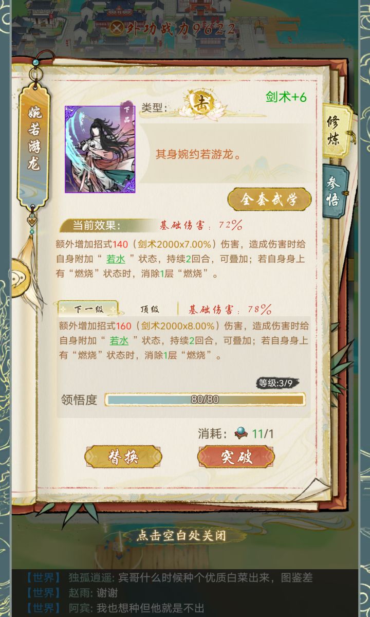 1、我们已拥有但是未使用的外功进行升级也是会增加剑术