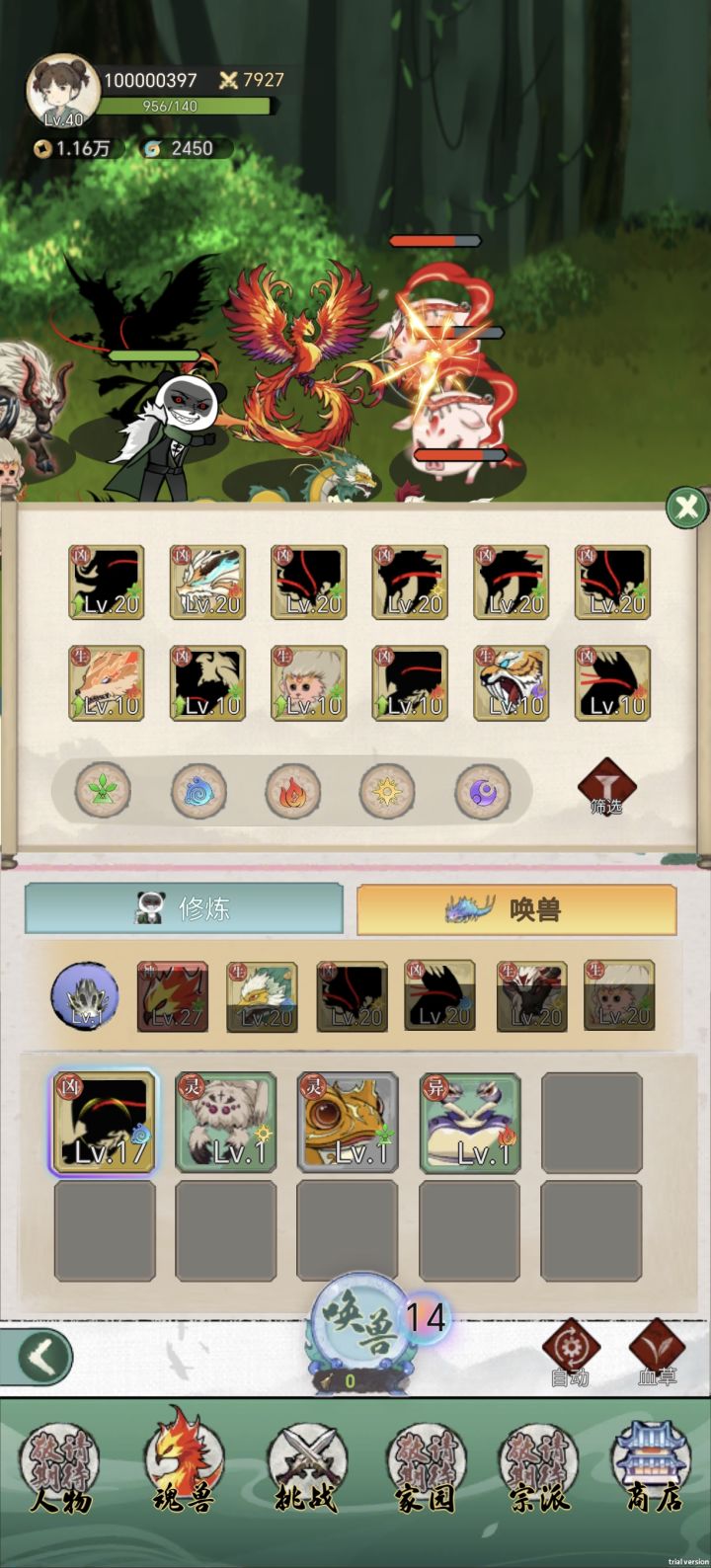 点击焕兽,一个铃铛召唤一次,点击焕兽旁边那个圈圈是兽笼,上面有等级和抽卡几率,20级可以抽红!