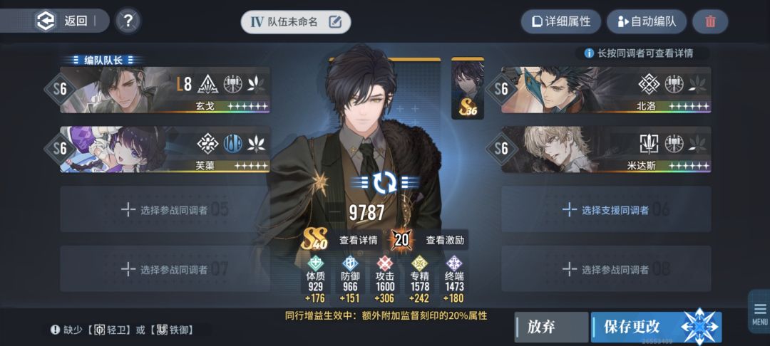 三、角色&烙痕培养:队长玄戈优先升s5,技能双9,潜能开发越高越好、北洛和芙蕖至少在s4以上,技能双6以上,潜能开发可以先不升。烙痕最少每一张都在60级别以上,有资源情况下,默、蛋生优先升满,其他卡随着主线推进,获得更高品质烙痕,可以替换,所以不着急升满。