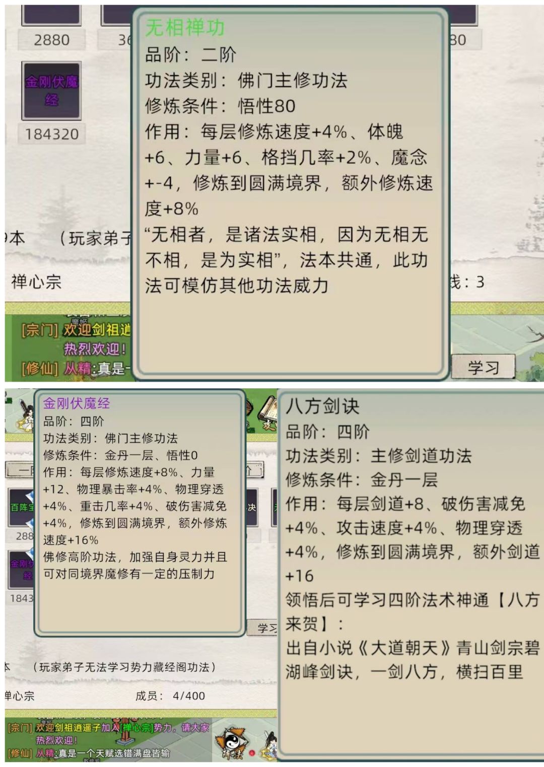 很多新人可能不是很了解各宗门都有什么功法
