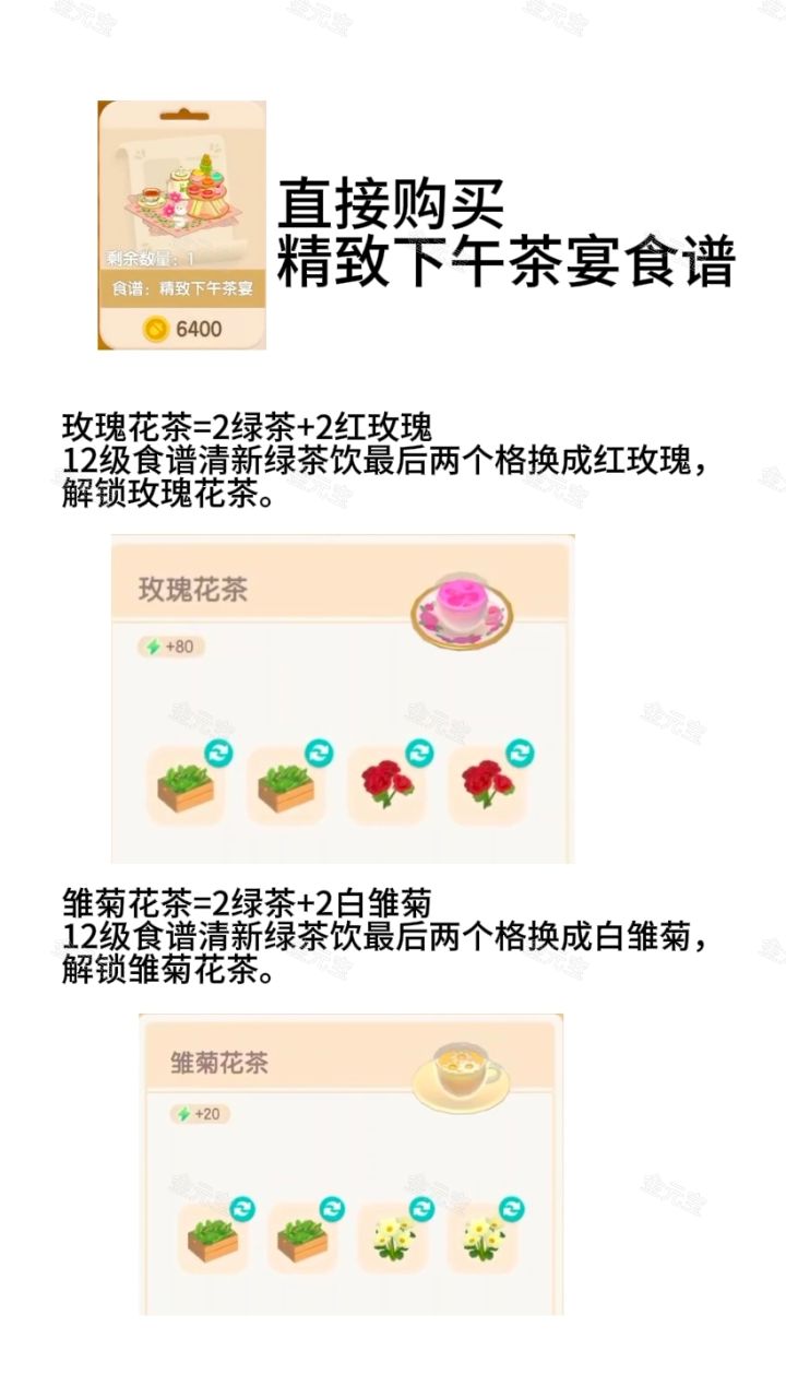 12级食谱清新绿茶饮最后两个格,换成白雏菊,解锁雏菊花茶。
