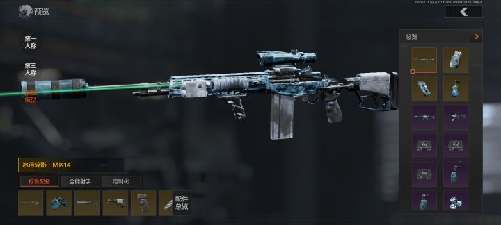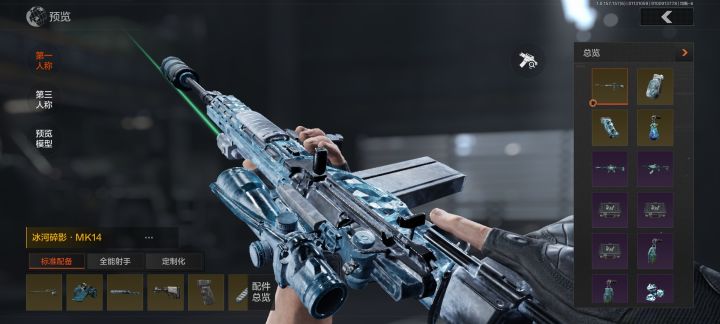 1、以蓝黑为主色调,覆盖一层淡淡的冰霜质感冰河碎影 · MK14沉稳又低调。相比其他的枪皮个人觉得水准偏中,与以往的金皮检视动作不同,本次改为擦枪和抖冰屑,感觉碎冰元素不是很多,整体枪身更透亮点效果可能会更好,总的整体来说还是不错的,可以考虑入手。