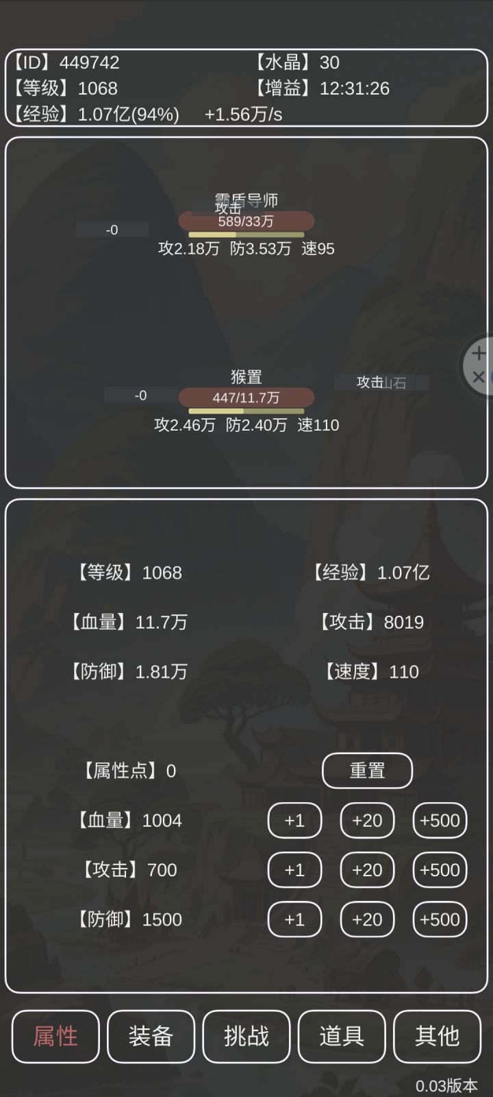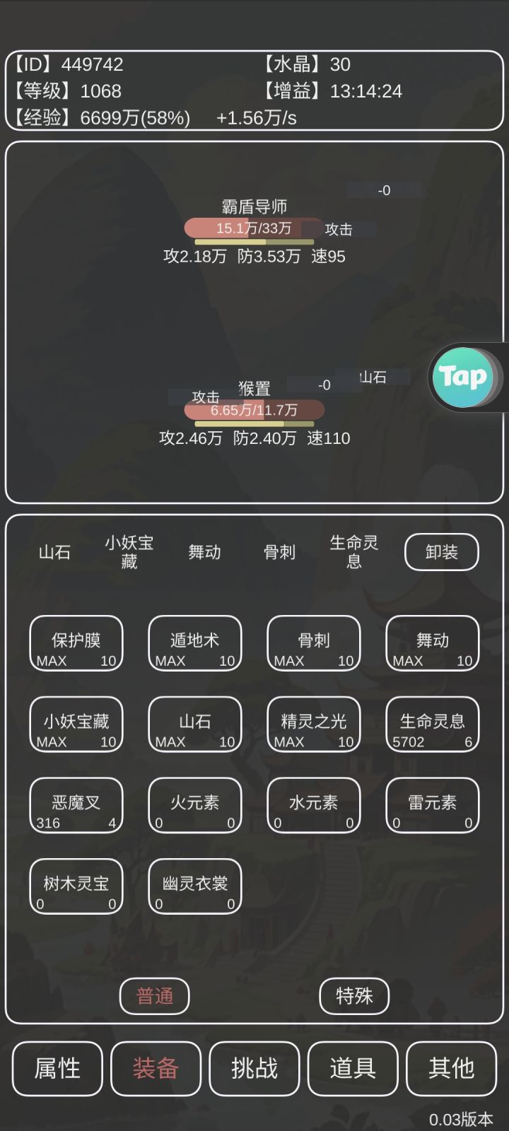 带上小妖攻击力要达到 2.43 万才能有伤害,防御点到 2 万,史莱姆,山石,可以免伤。想打死最少要有 16.5 万的血。