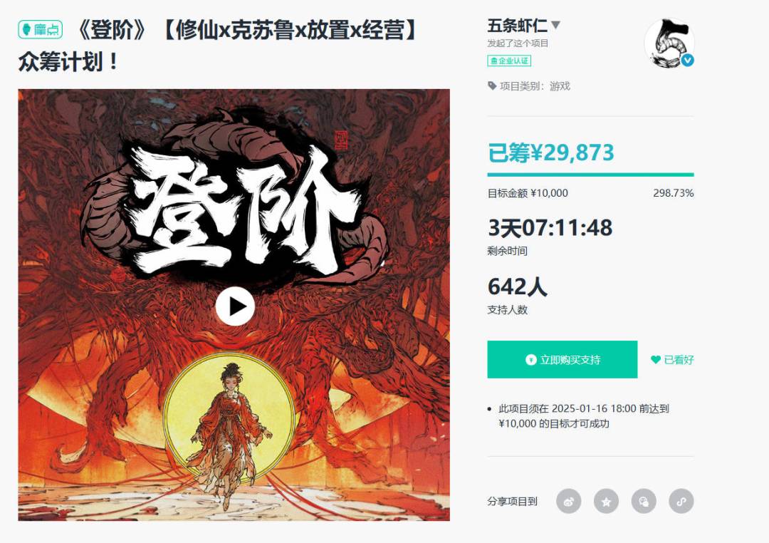 之前支持过登阶的道友们,可以直接在这里抽女修的正式版cdkey哦。~1月16号开奖: https://m.modian.com/idea/4063